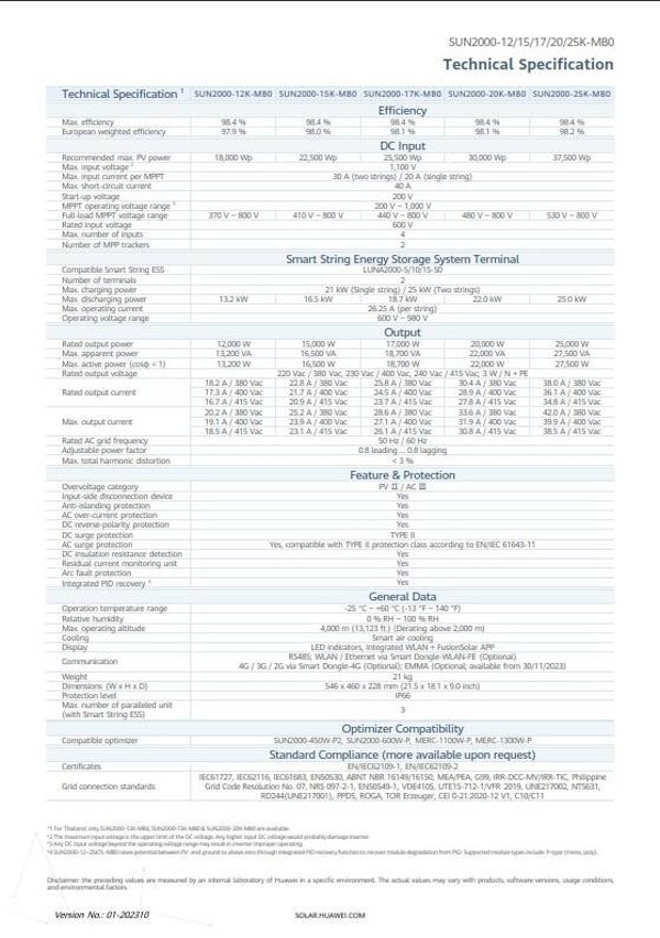Huawei SUN2000-25K-MB0 Hybrid + LUNA2000-15-S0 (15 kWh)